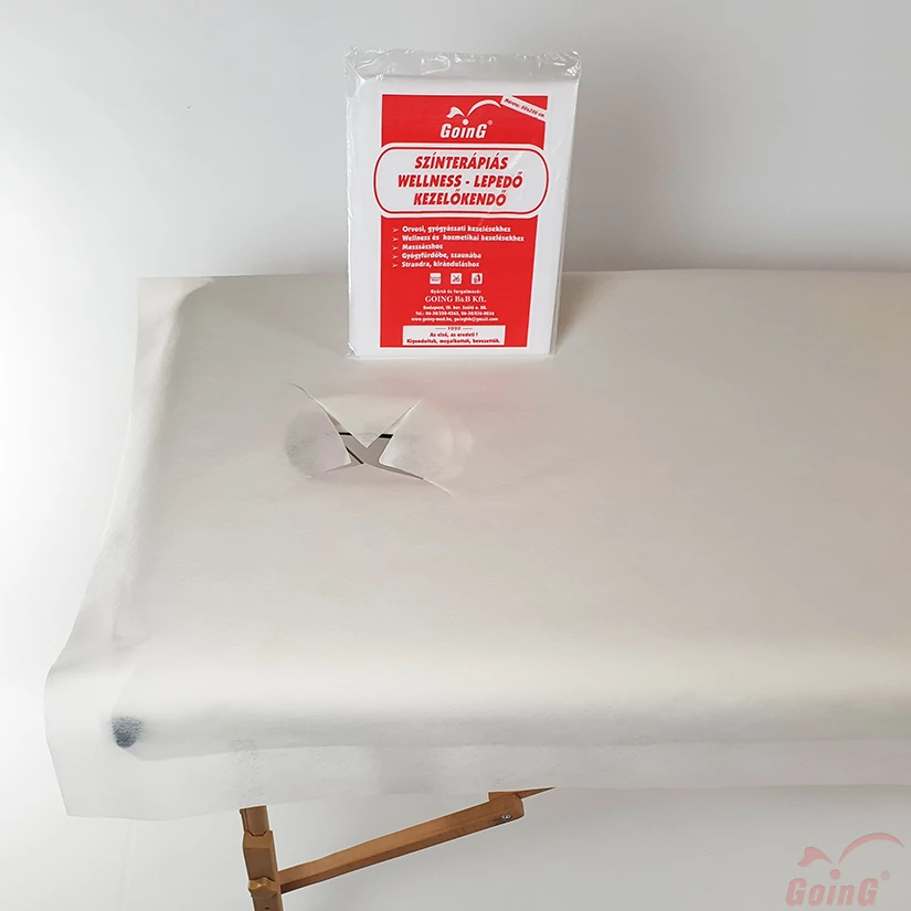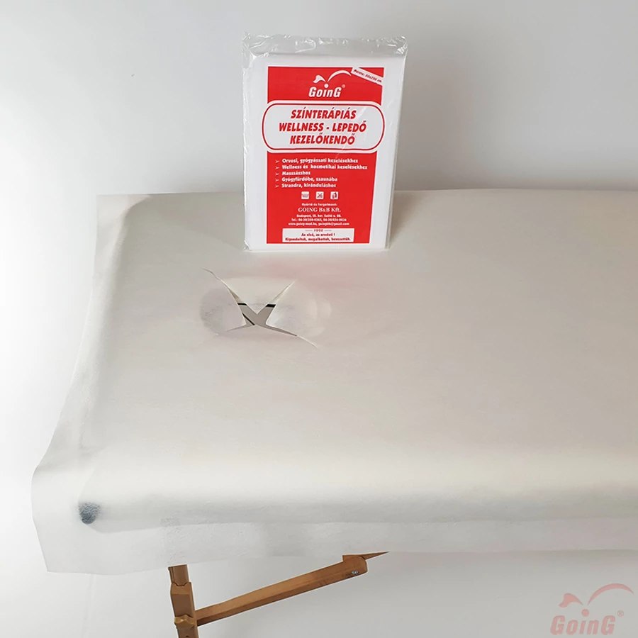 A kezelőágy nyílásánál praktikus X-kivágás. Anyaga 40 g/m2 PP bőrbarát textil hatású nem szőtt szövet, mely mosható, vasalást nem igényel, gyorsan szárad.