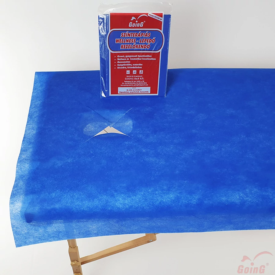 A kezelőágy nyílásánál praktikus X-kivágás. Anyaga 40 g/m2 PP bőrbarát textil hatású nem szőtt szövet, mely mosható, vasalást nem igényel, gyorsan szárad.