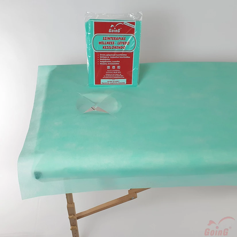 A kezelőágy nyílásánál praktikus X-kivágás. Anyaga 40 g/m2 PP bőrbarát textil hatású nem szőtt szövet, mely mosható, vasalást nem igényel, gyorsan szárad.